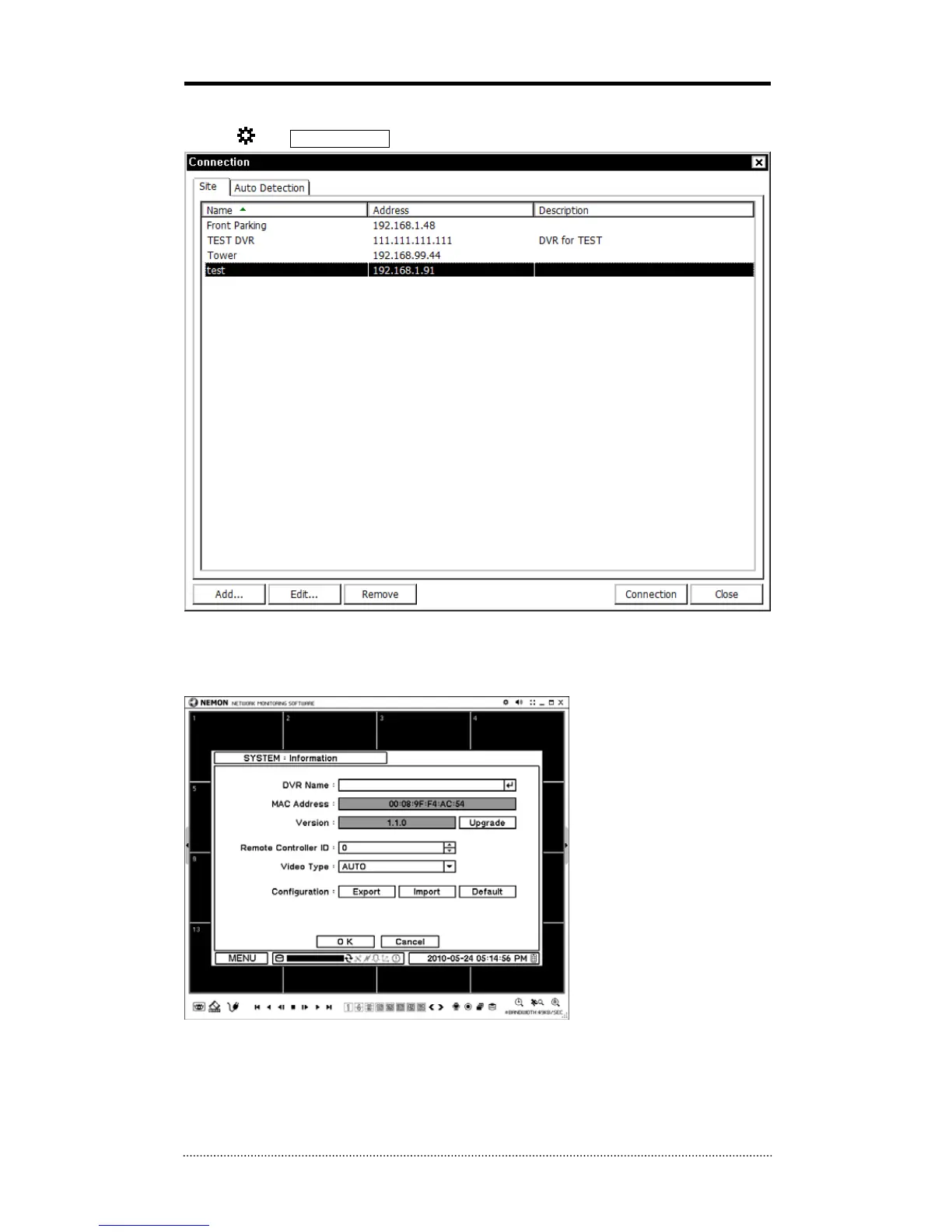 Select a DVR for setup and select Connection button. Setup menu will appear as show below