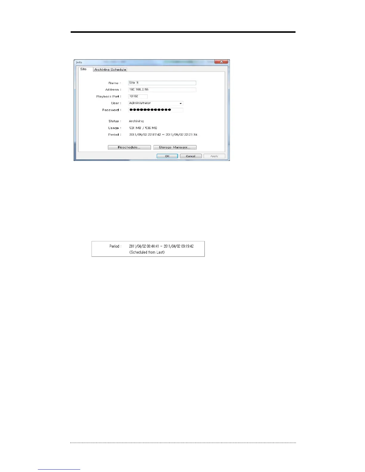 Name / Address / Playback Port / Username / Password : Information on registered Site