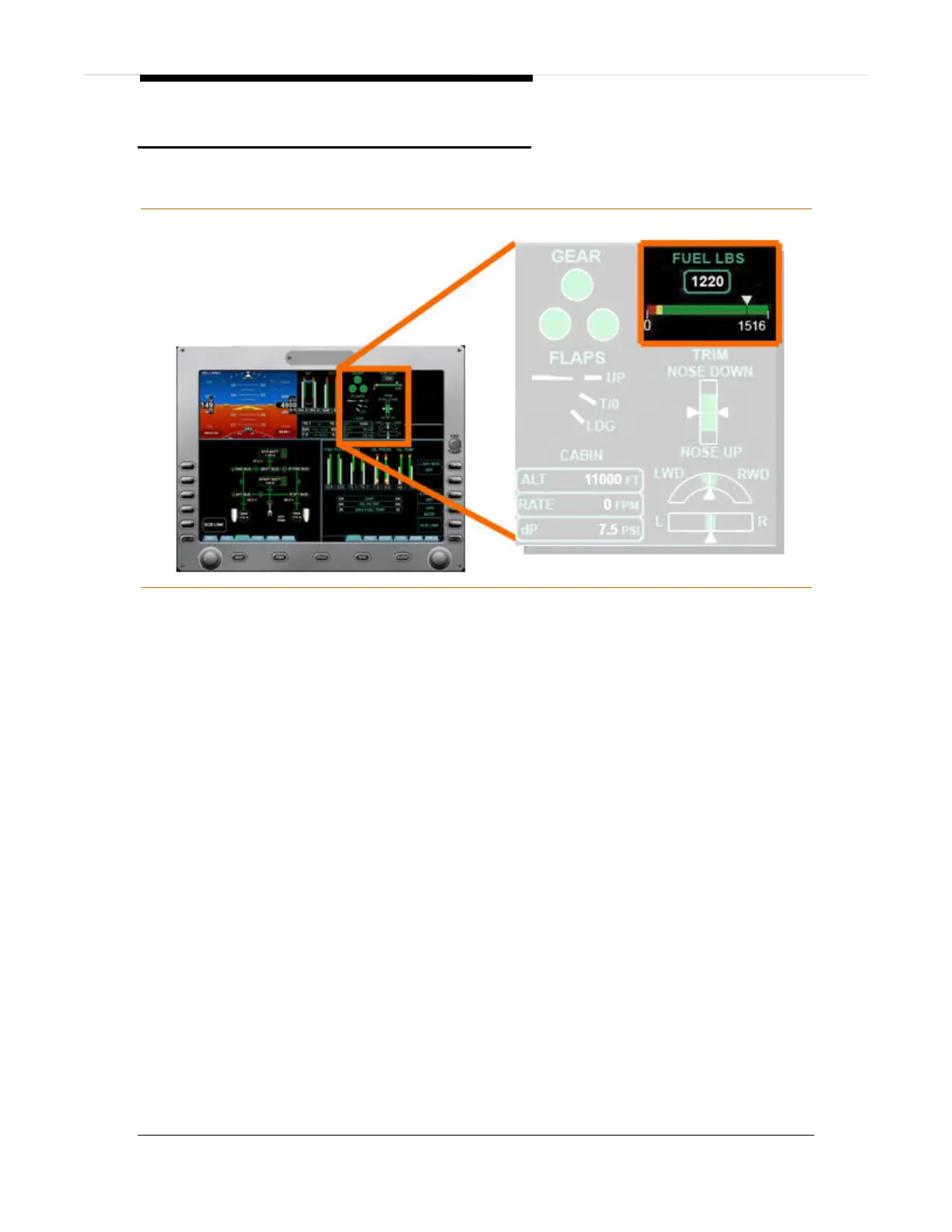 Fuel quantity is continuously displayed on the upper portion of the MFD. Fuel