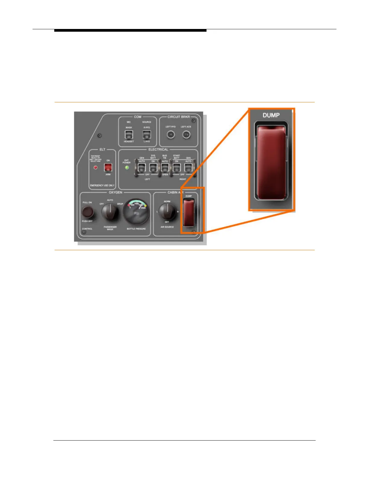 cockpit at high flow. A red CABIN DUMP text also appears on the left side of the