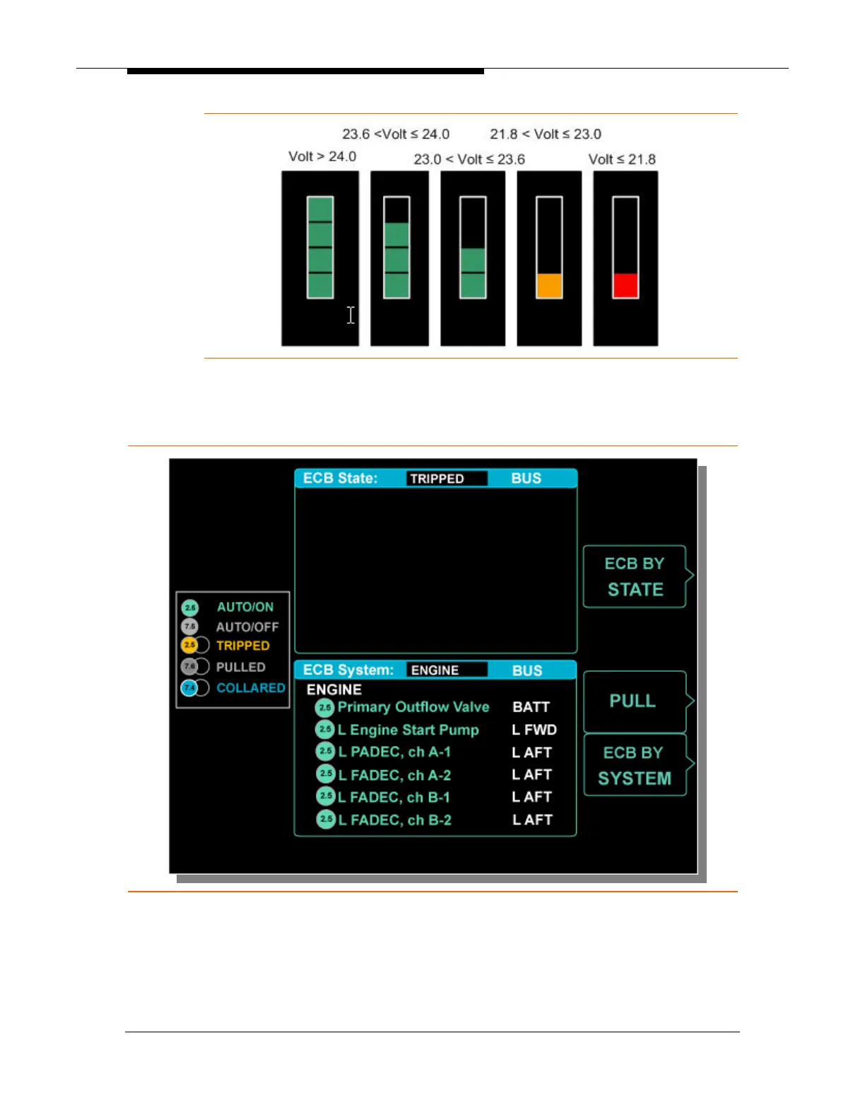 The upper display allows the pilot to select the ECBs by state, out, tripped, pulled or