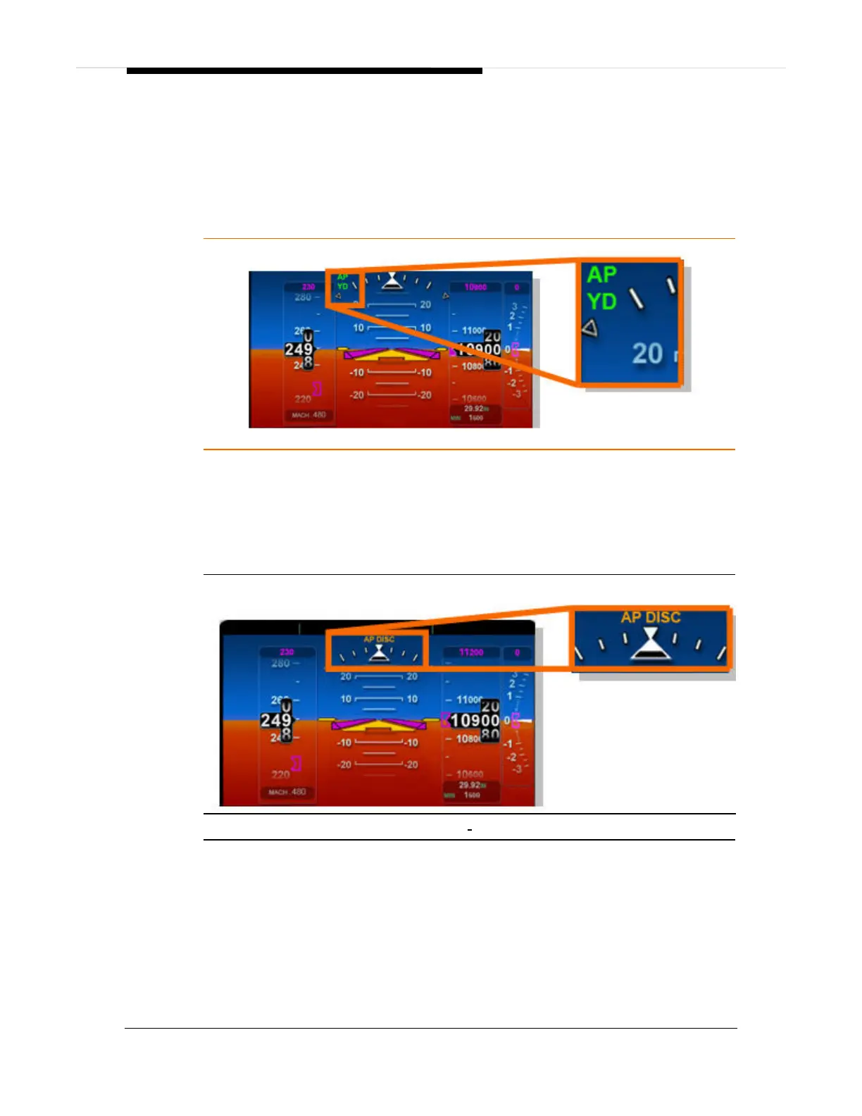 automatic disconnect, an amber AP DISC text appears on the PFD and an aural alert