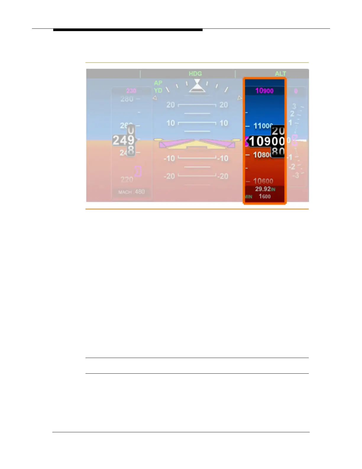 above 300 fpm. The altitude trend vector is drawn under the altitude pointer such