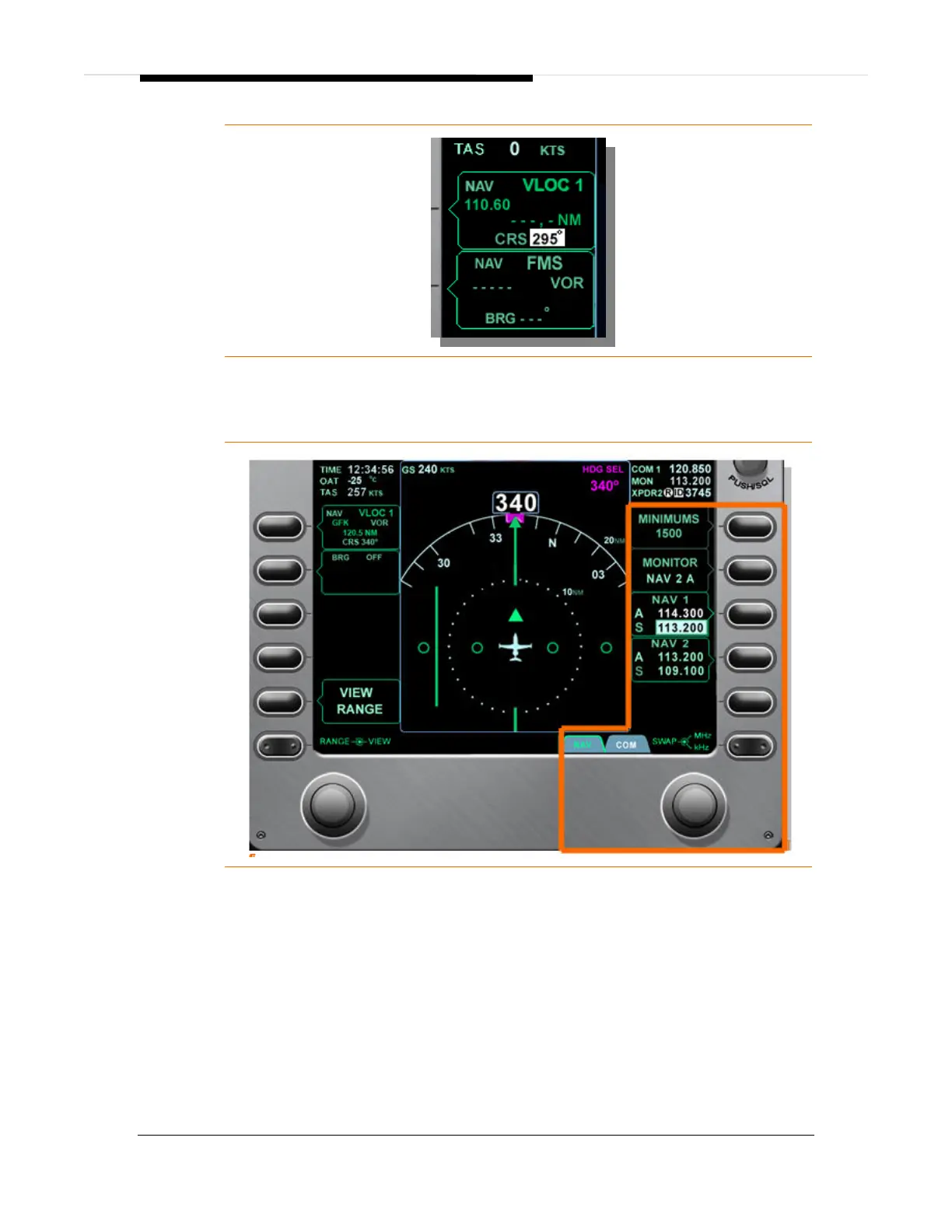 3. Press right line select key 3 to tune the standby frequency for NAV 1, or right