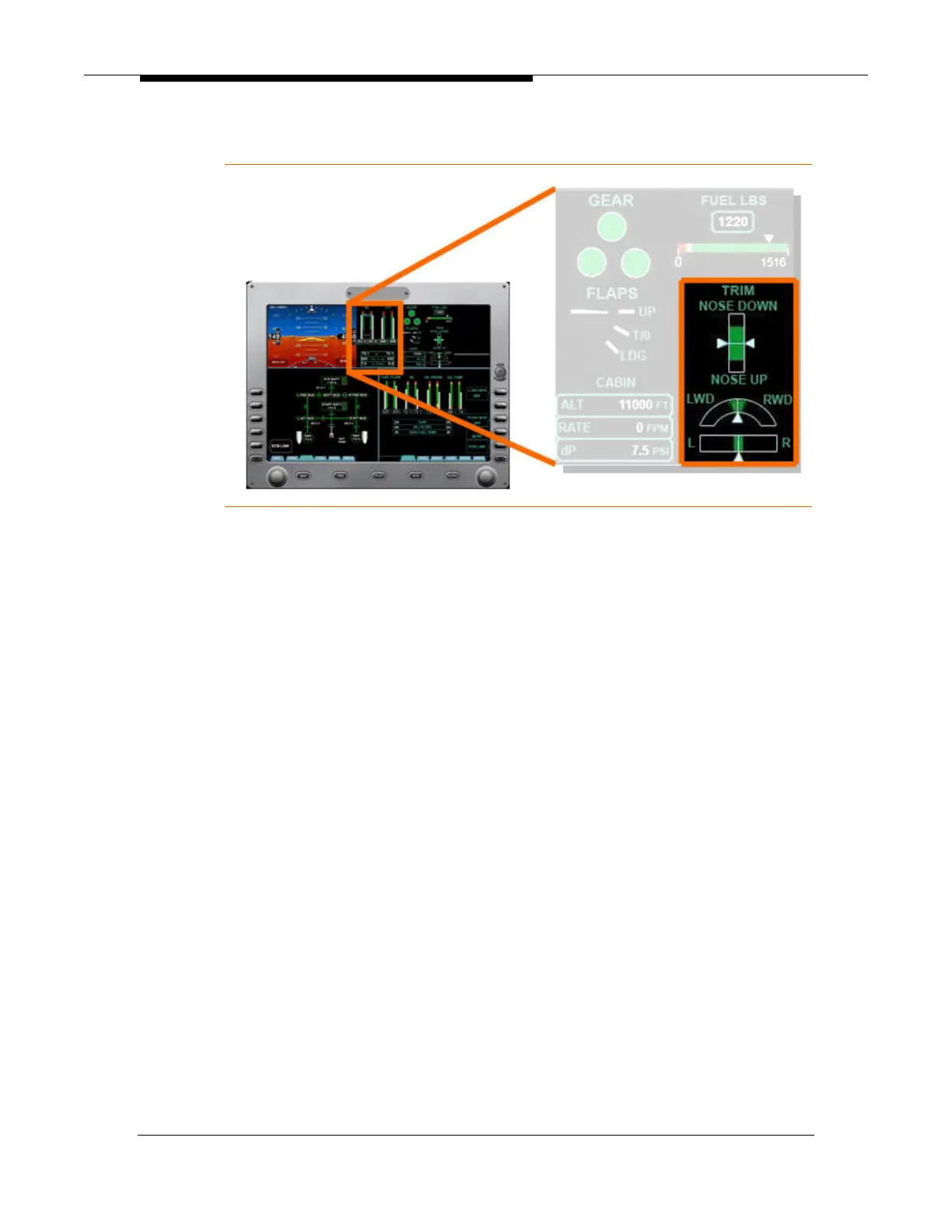 Trim indications for Pitch, Roll, and Yaw are displayed below the fuel quantity
