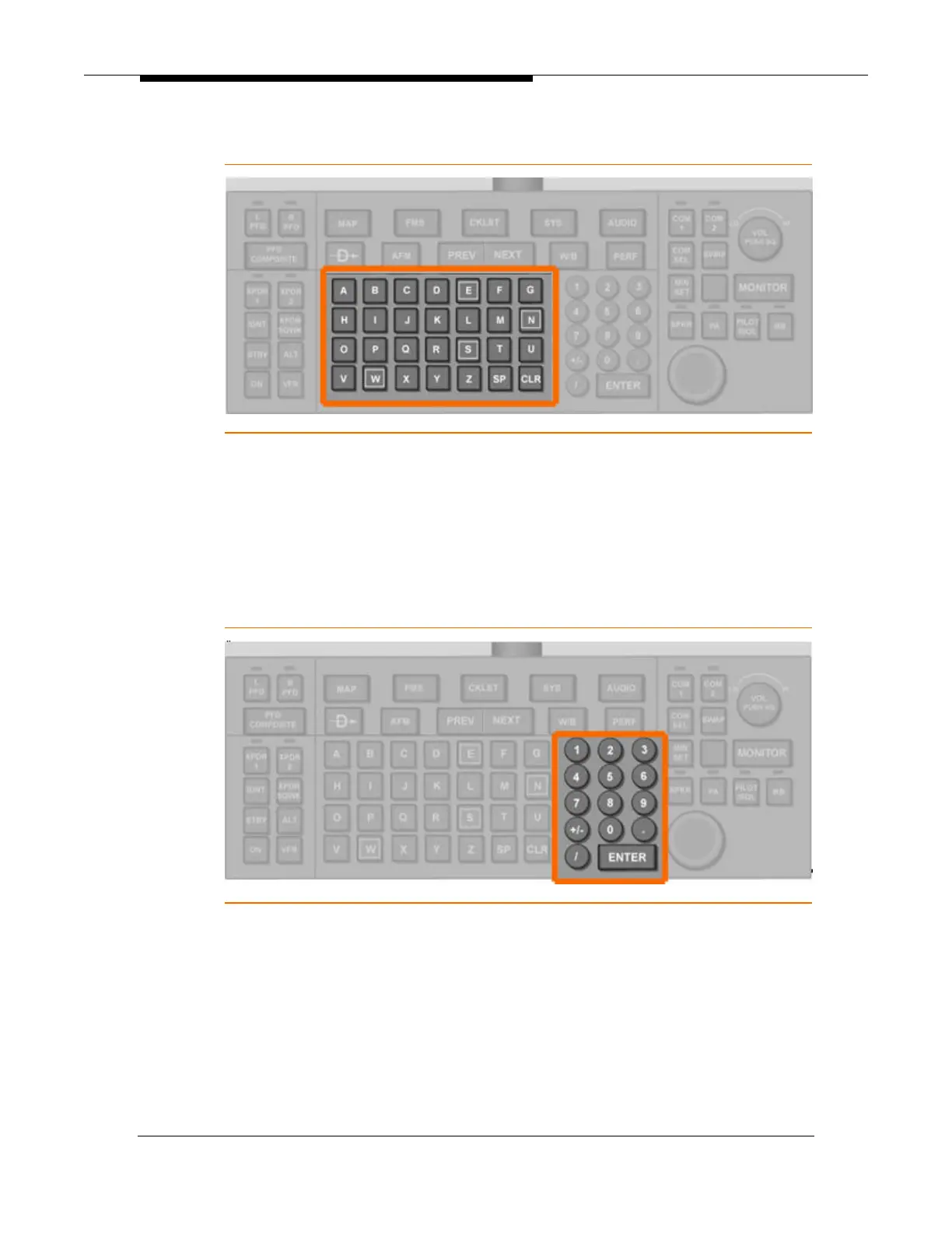 frequency/code entries and MFD tiles 6 and 7 when numerical character input is