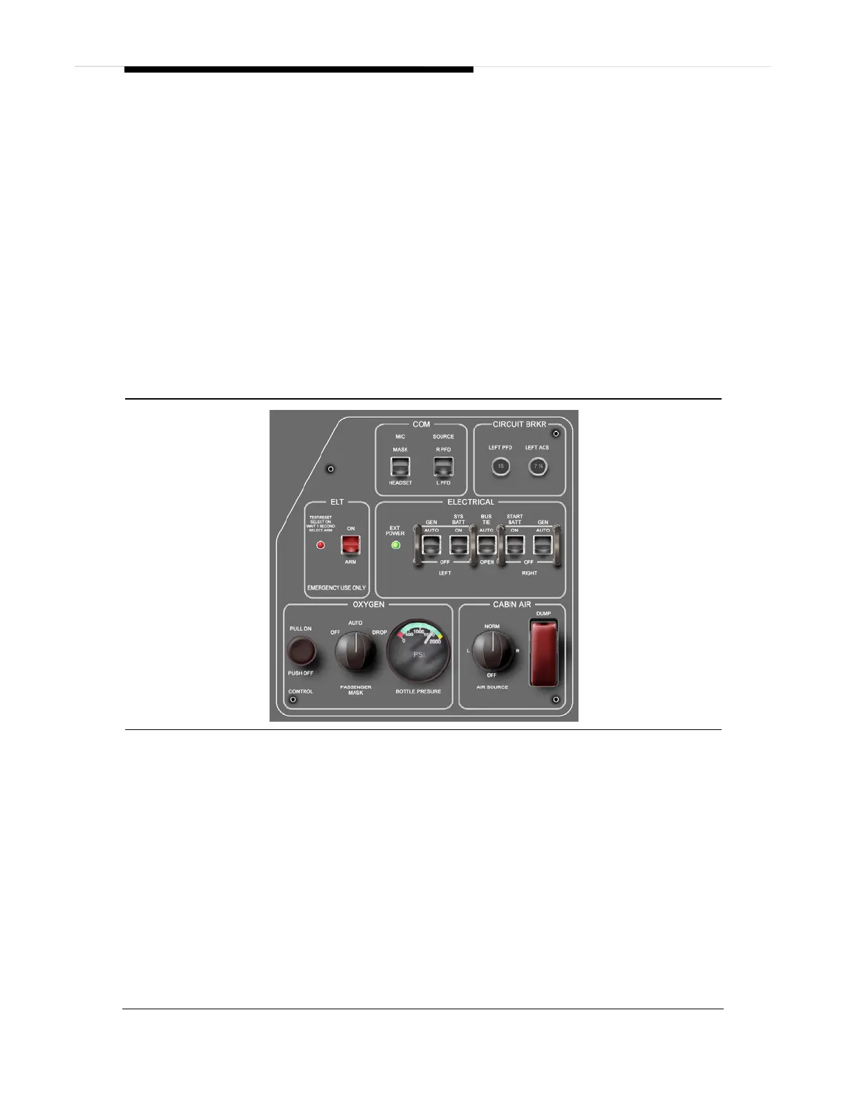 • Communications selections (headset/mask, Left or Right PFD)