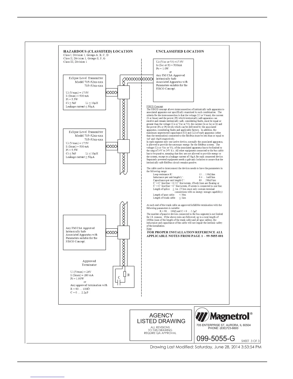 Eclipse 705 - Agency Specifications (FOUNDATION Fieldbus)