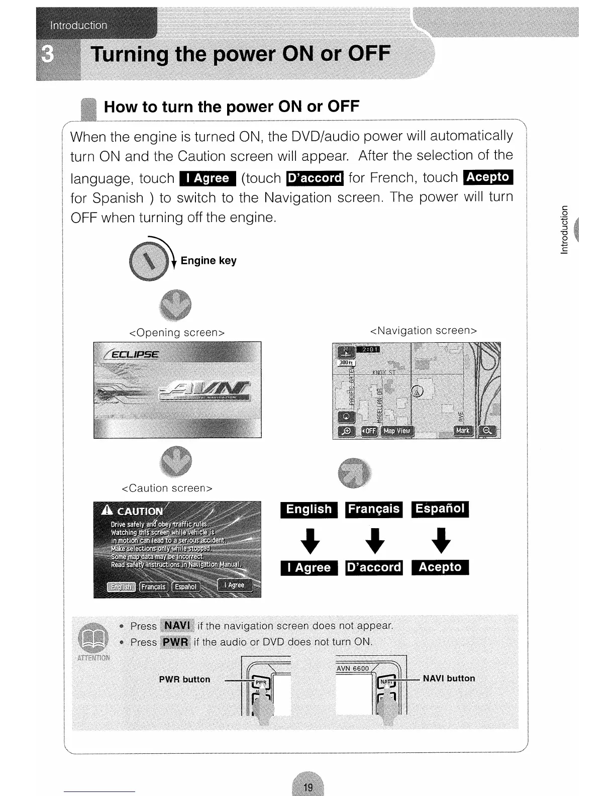 Eclipse AVN 6600 - Powering the Device On and Off