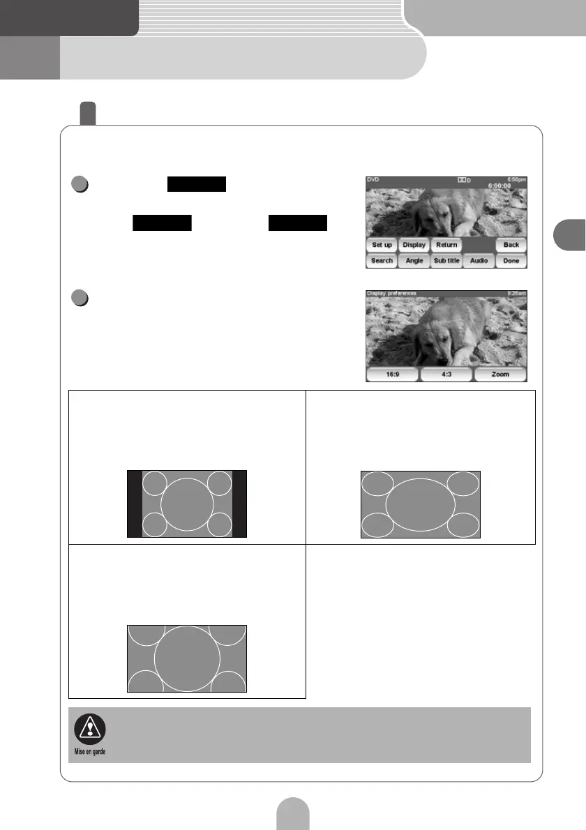 Vous pouvez changer le format d'affichage des écrans DVD, iPod-vidéo