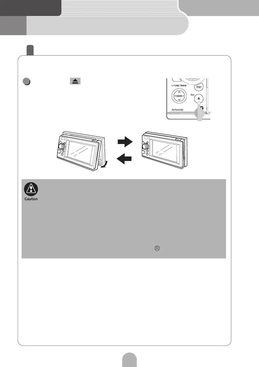 • When the display is in the TILT status, do not insert a disc or anything else into the