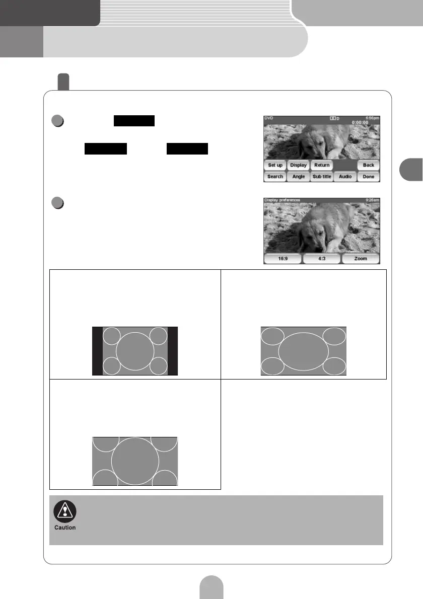The screen size of DVD, iPod-video and VTR displays can be switched.