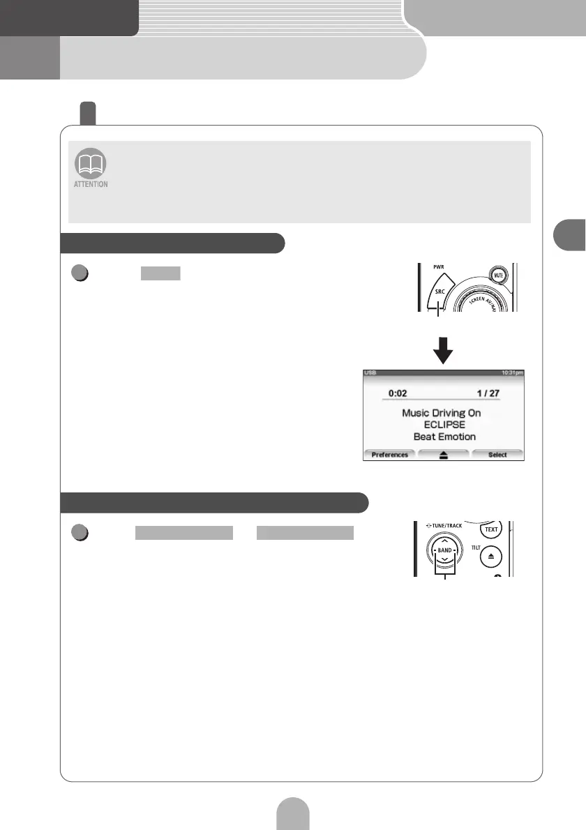 • In contrast to a CD-Rom, the folder selection function is not available for the USB