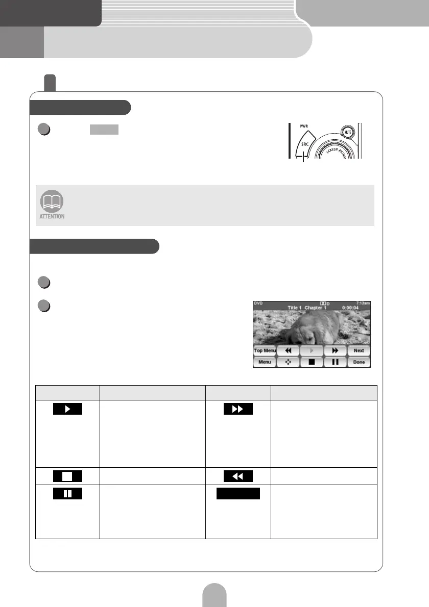• Some DVDs may not be played automatically. In this case, play the DVD from the