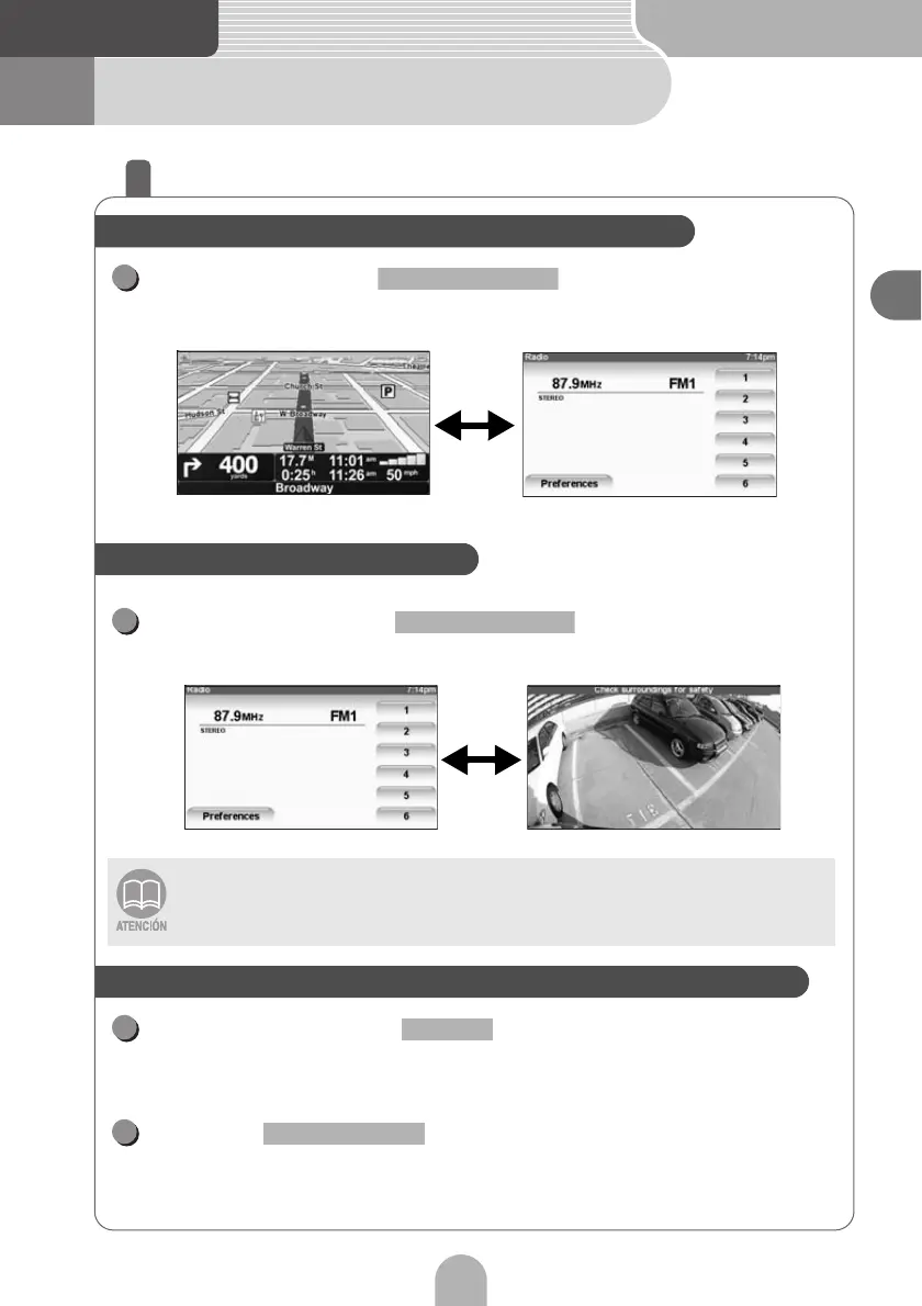 Sólo se mostrará la pantalla de la cámara si se conecta una cámara con vista trasera