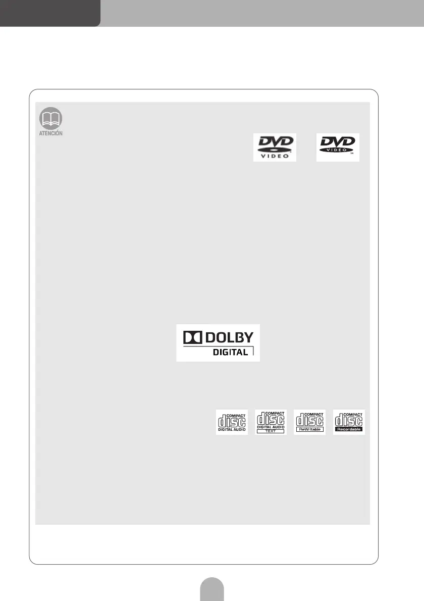 • Se pueden utilizar los discos compatibles con Dolby Digital y con la siguiente