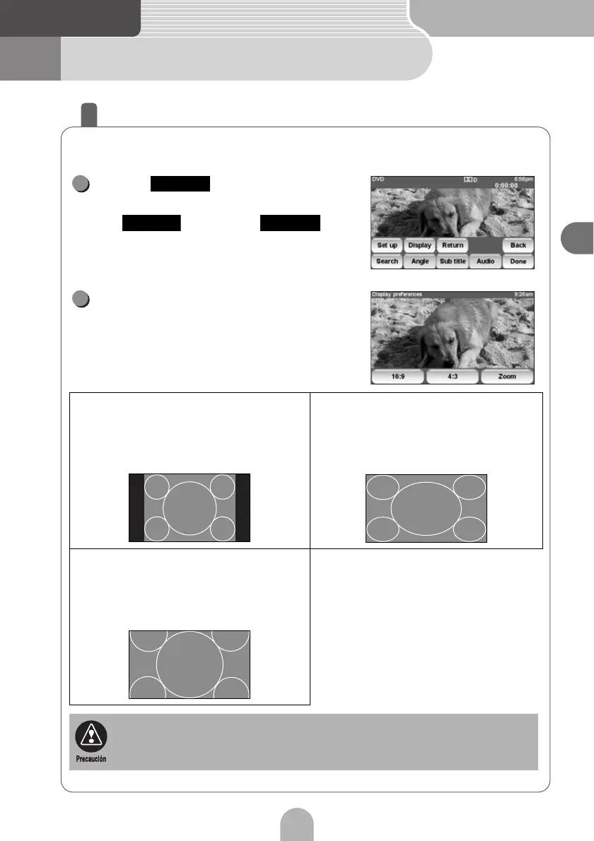 Se puede modificar el tamaño de visualización de las pantallas del DVD,