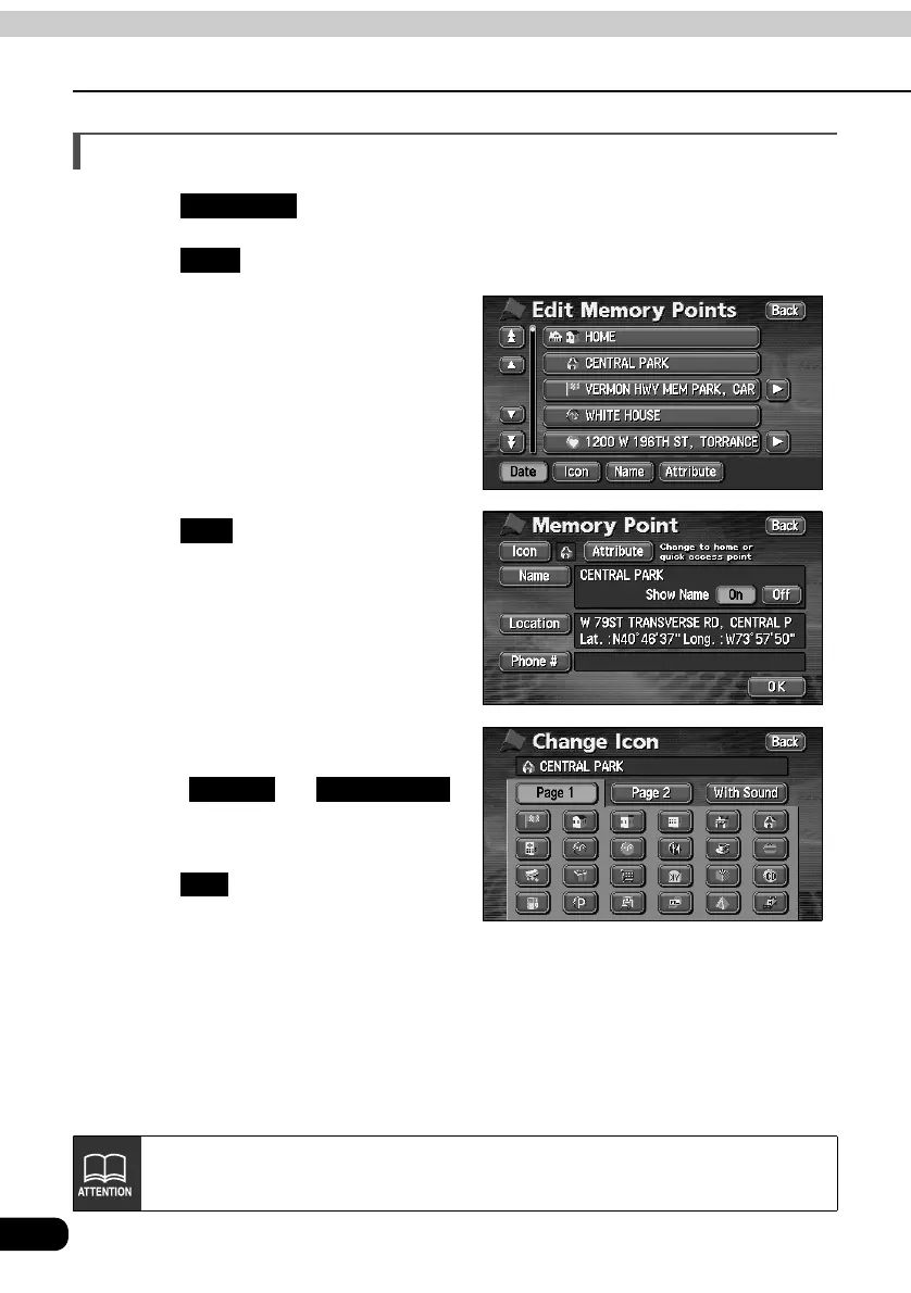 The items in memory point list can be sorted by the Date, Icons, Names or