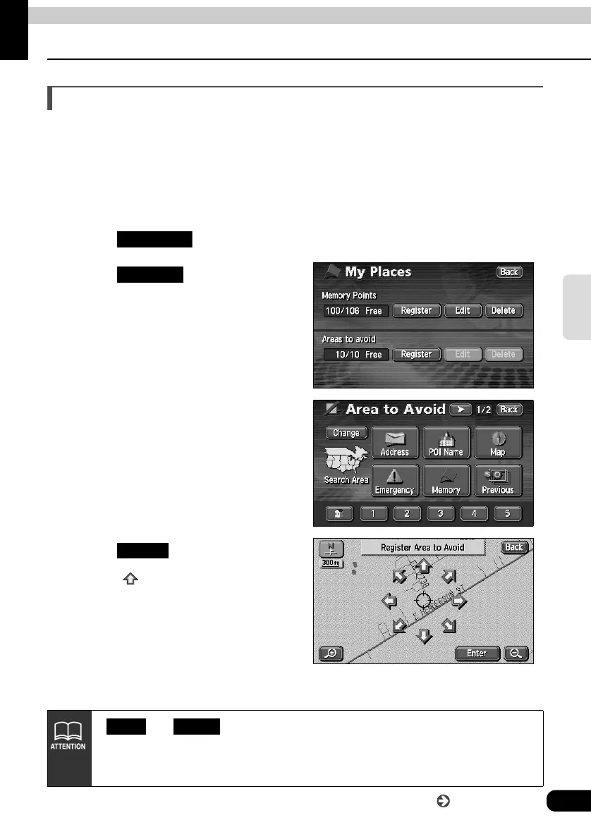 Up to 10 detour memory points can be registered. (If registering more than 10 points, first