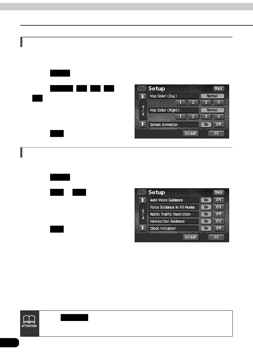 The map display color (5 color selection) can be switched for both the daytime and nighttime