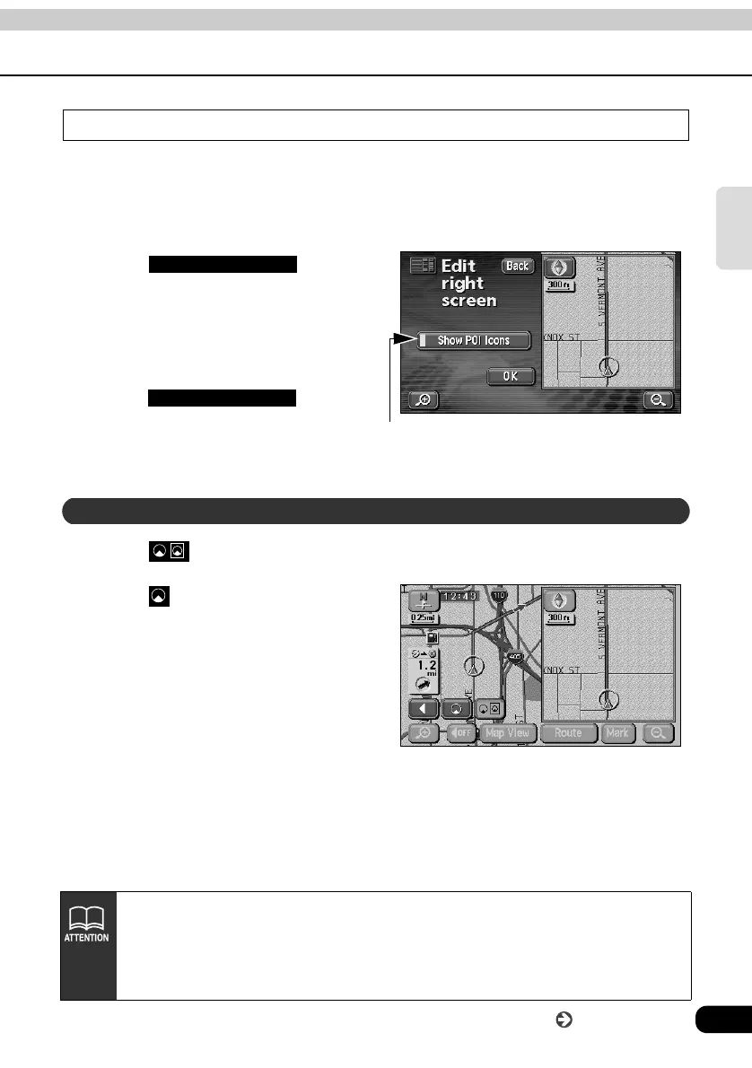 • When a POI vicinity is displayed, the settings in the screen on the left and right