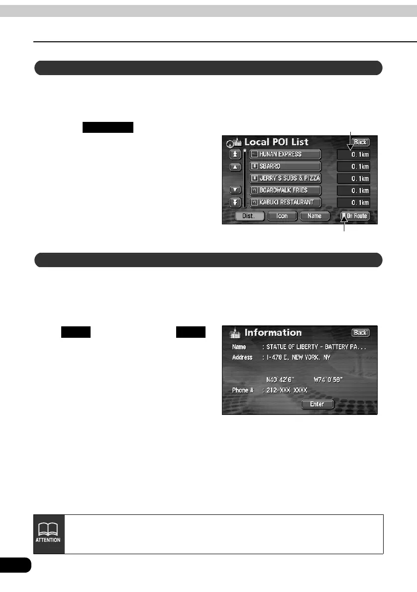 • If a route is not displayed on the map shown on the screen, a list of POIs along
