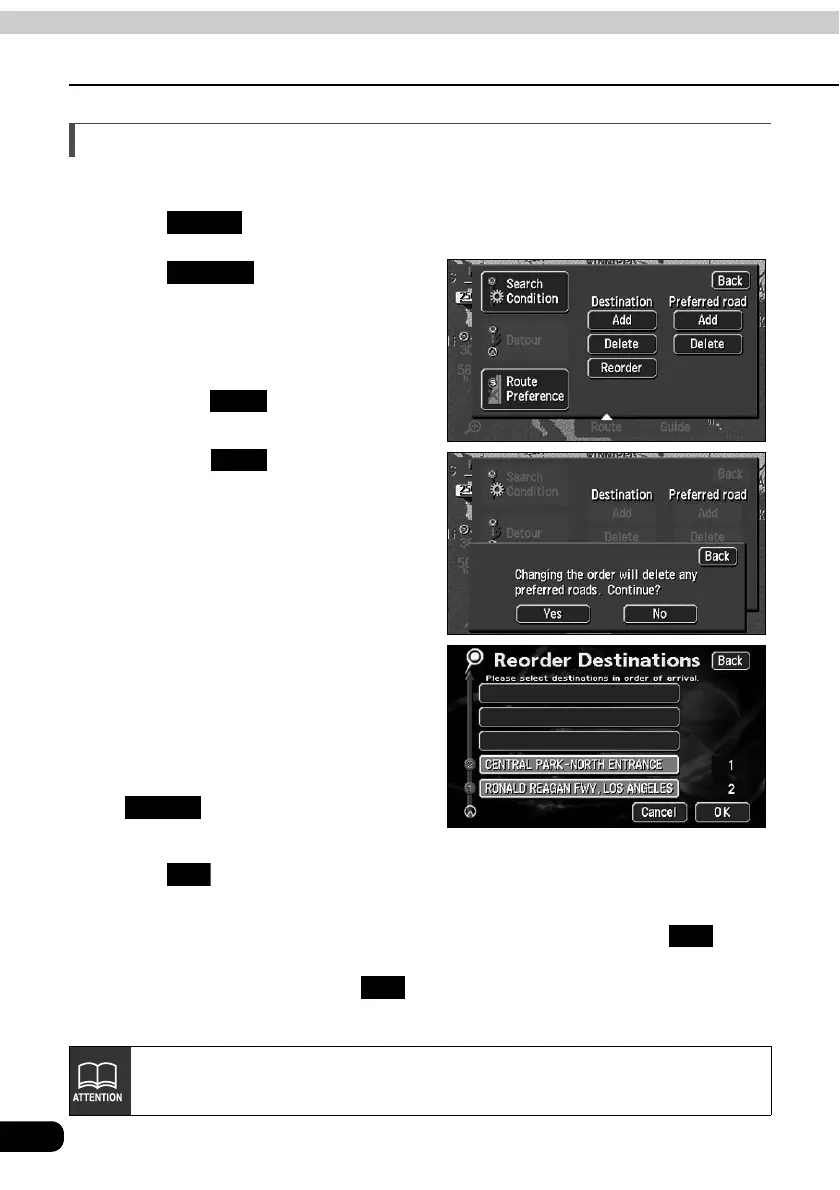 If changing the destination order with a transit road indicated (Refer to page 82),