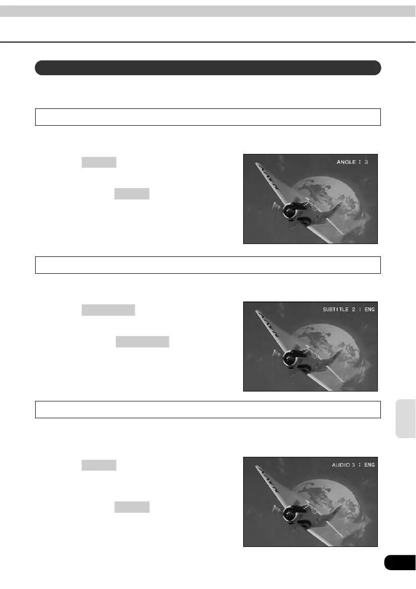 When several angles of a scene are recorded on a disc, the angle can be switched.