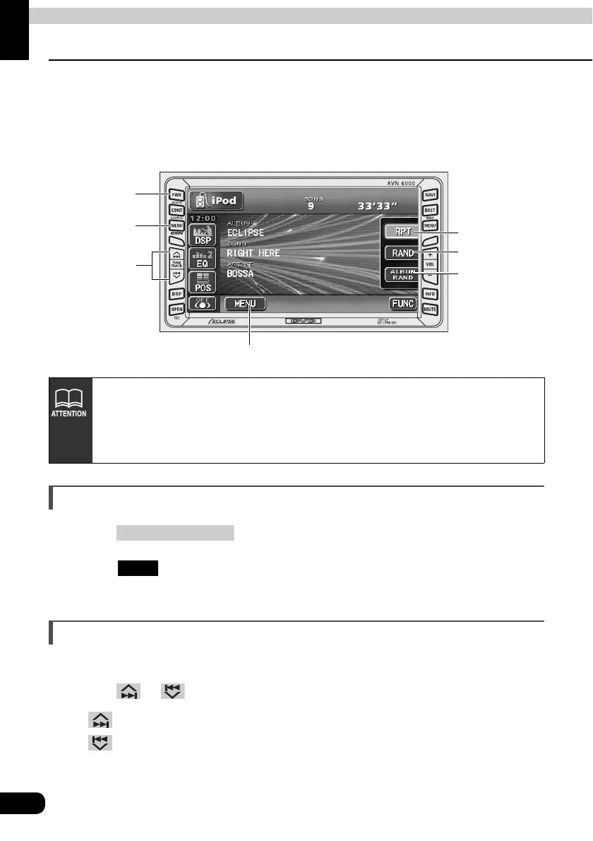 • It is assumed here that the iPod has already connected to this main unit with an