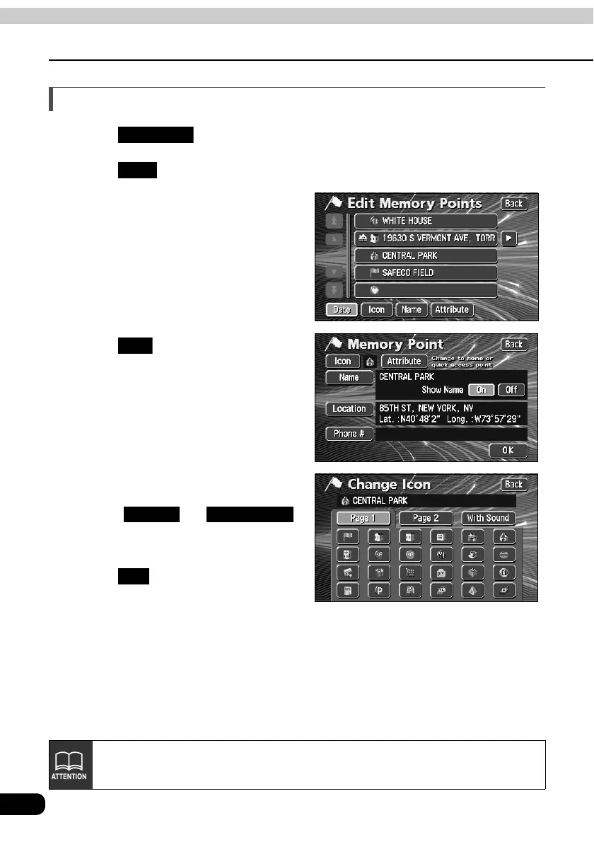 The items in memory point list can be sorted by the Date, Icons, Names or