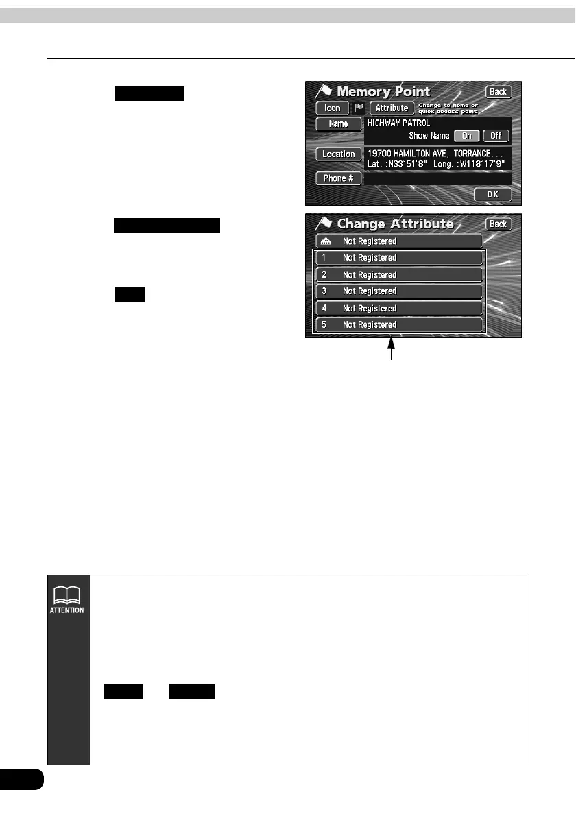 • Depending on the location, the address displayed for the special memory point