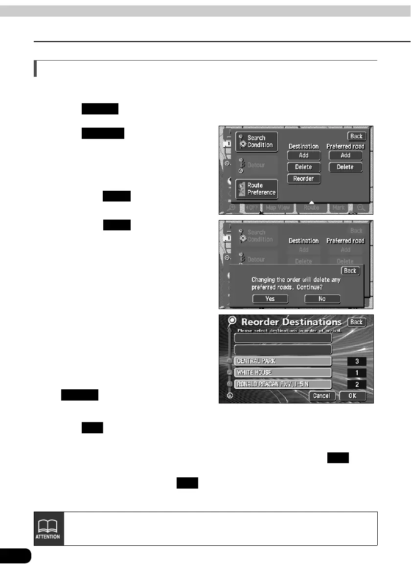 If changing the destination order with a transit road indicated (Refer to page 80),