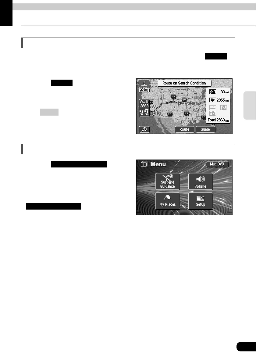 the all-route display screen to start the route guidance. Route guidance can be paused and