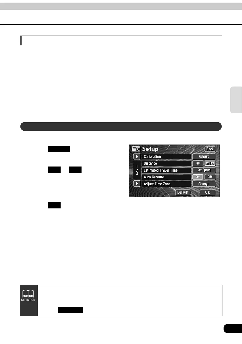 • Touch in the Setup screen to return all items to their default settings.