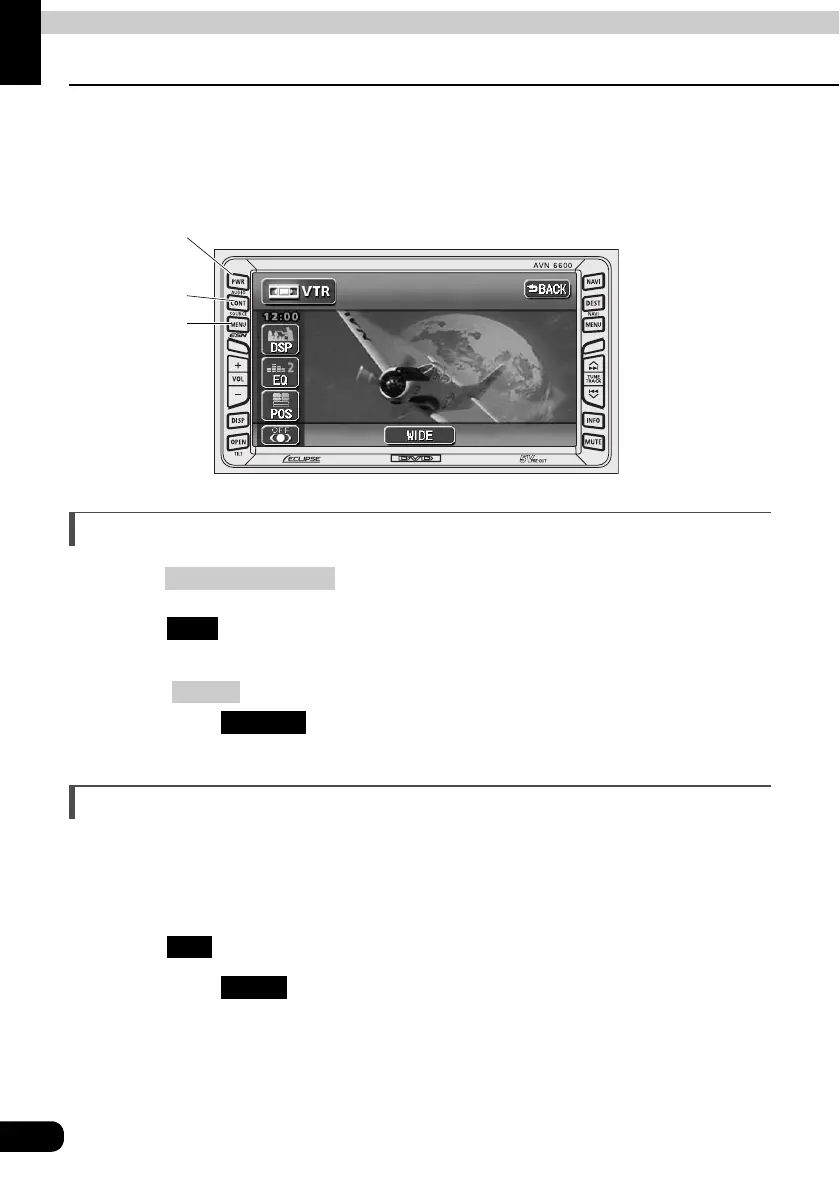 switch turned to ON or ACC. (Only sound can be heard if a VTR is played while the car is in