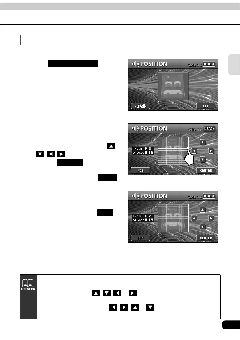 The set position for front-to-back, right-to-left volume balance can be adjusted.