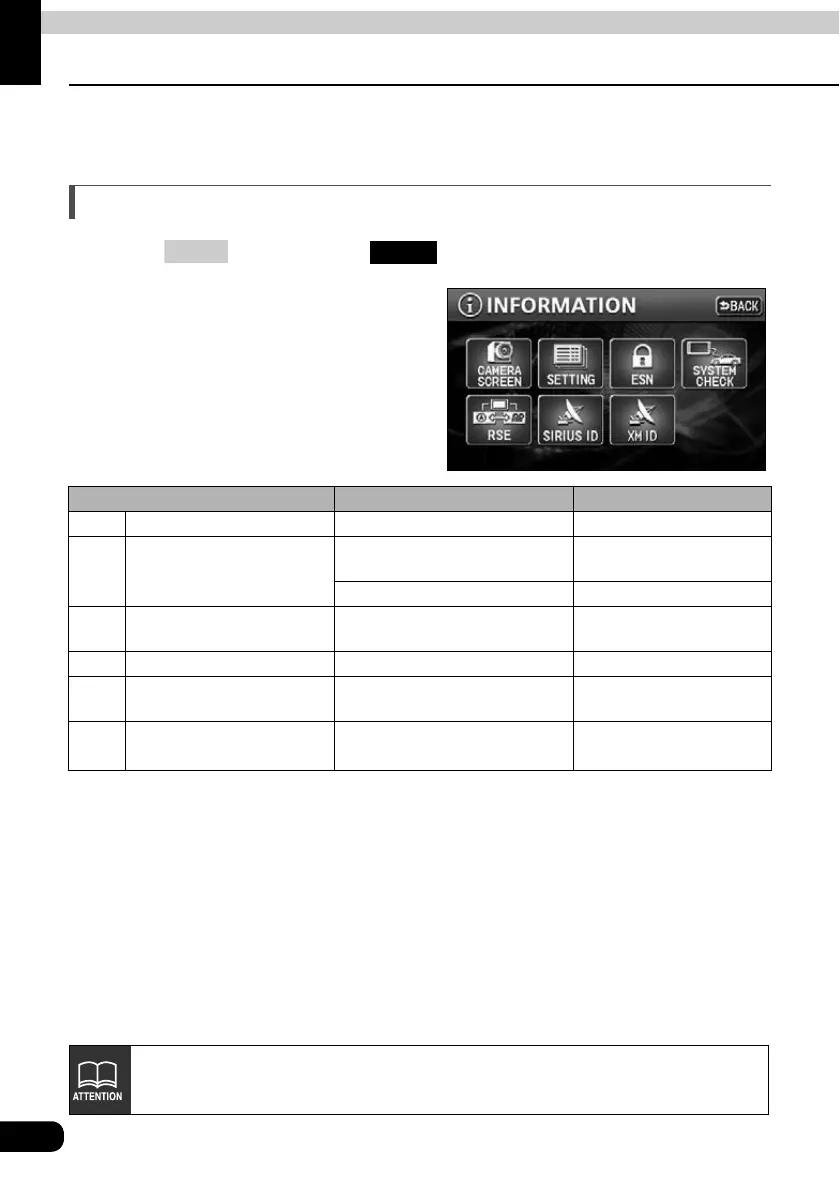 The information function contains "SETTING", "ESN" and "SYSTEM CHECK". The "CAMERA