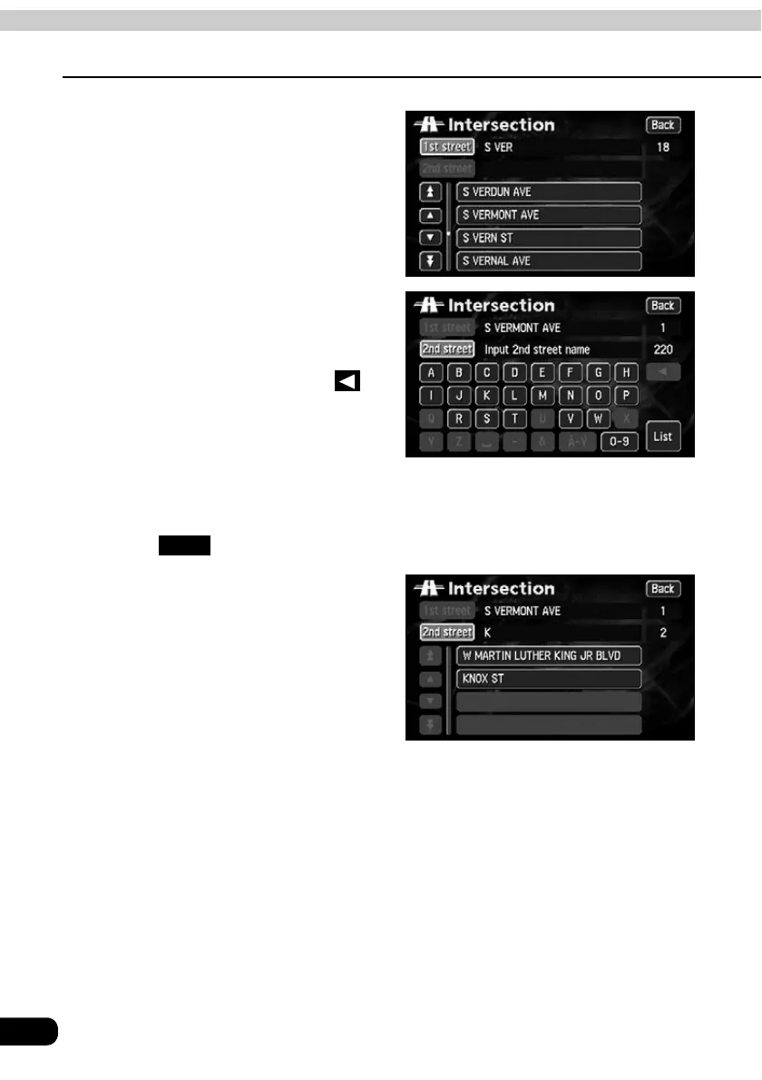 • Touch to display a list of the applicable streets.