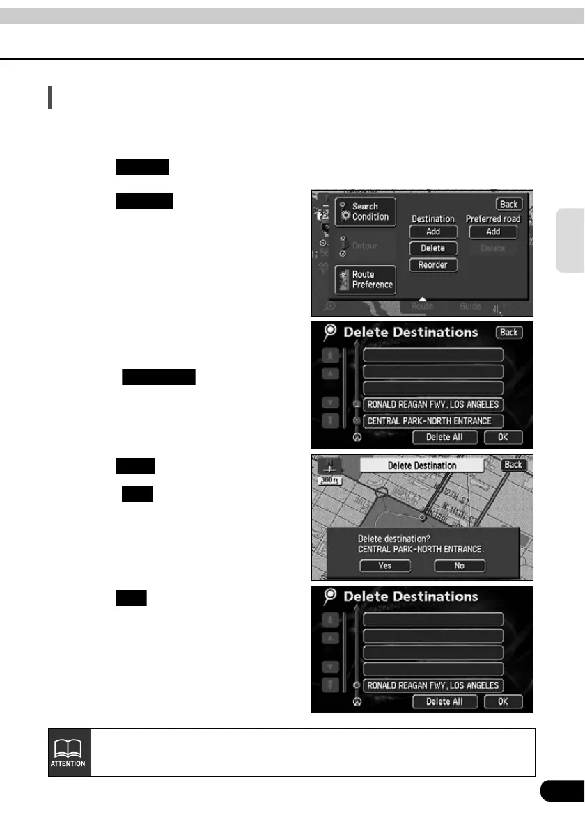 Multiple set destinations can be deleted. It is also possible to delete all the destinations at