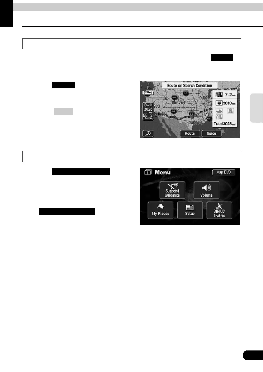 the all-route display screen to start the route guidance. Route guidance can be paused and