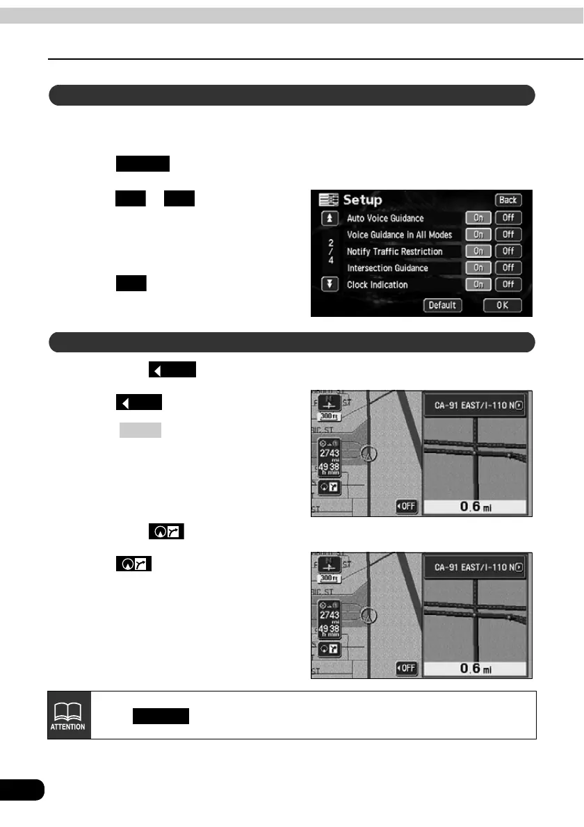 Select either to have the intersection guidance screen turned ON (display) or OFF (not