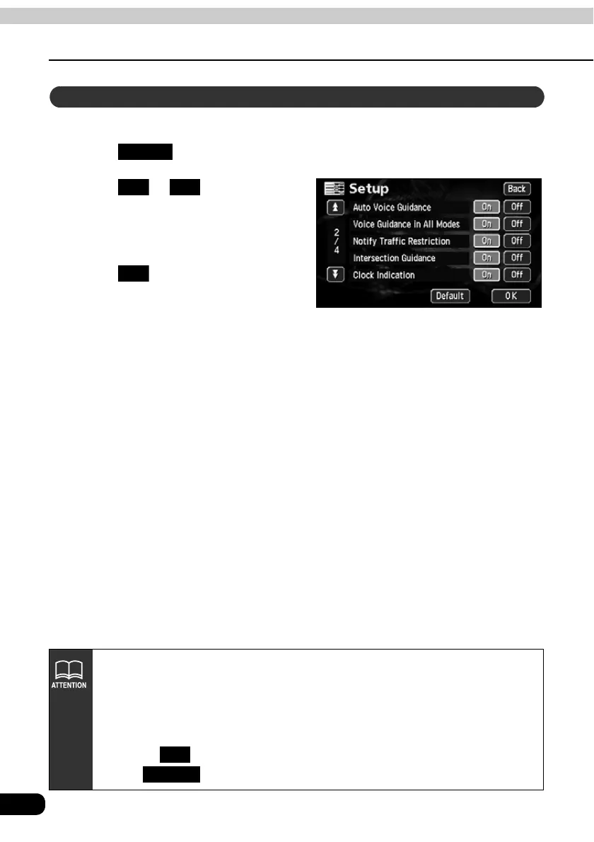 The auto voice guidance can be turned ON (announced) or OFF (not announced).