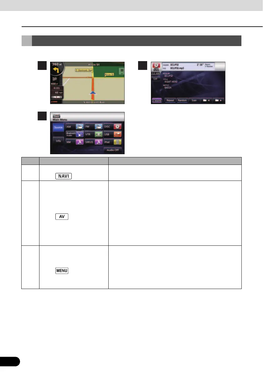 The main modes of this receiver are MENU, Navigation, and Audio.
