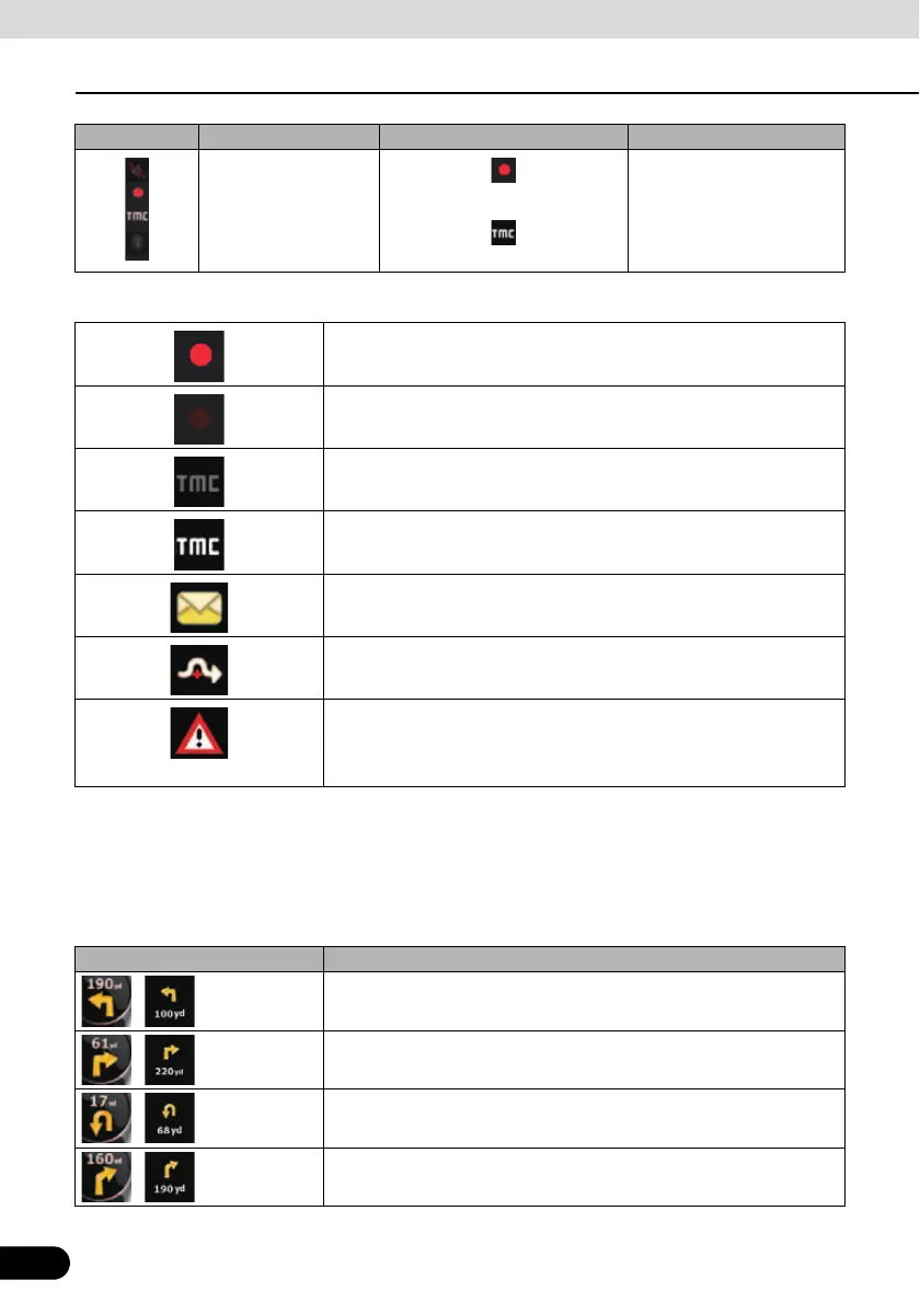 Most of these icons are very intuitive and known as road signs. The following table lists some