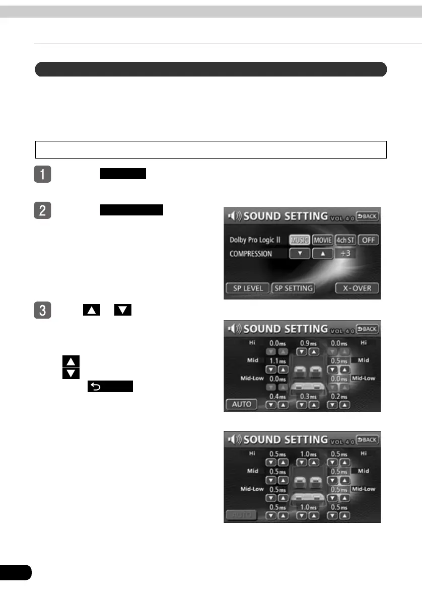 The delay time and level of the sound from each speaker can be adjusted in order to correct