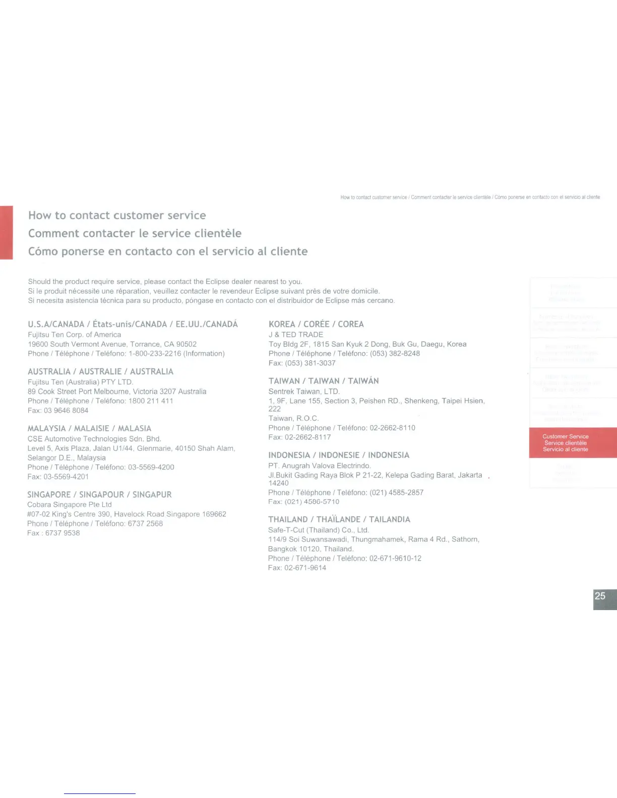 Should the product require service, please contact the Eclipse dealer nearest