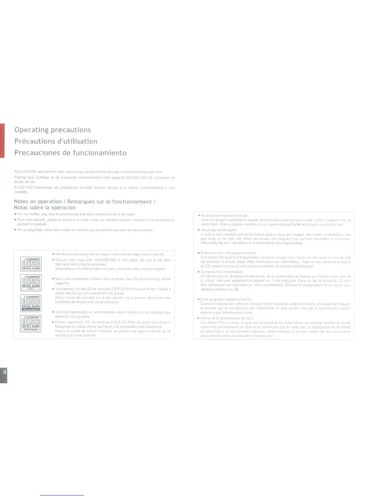 Eclipse CD1200 - Operating Precautions; Precautions Dutillsation; Precauciones de Funclonamlento