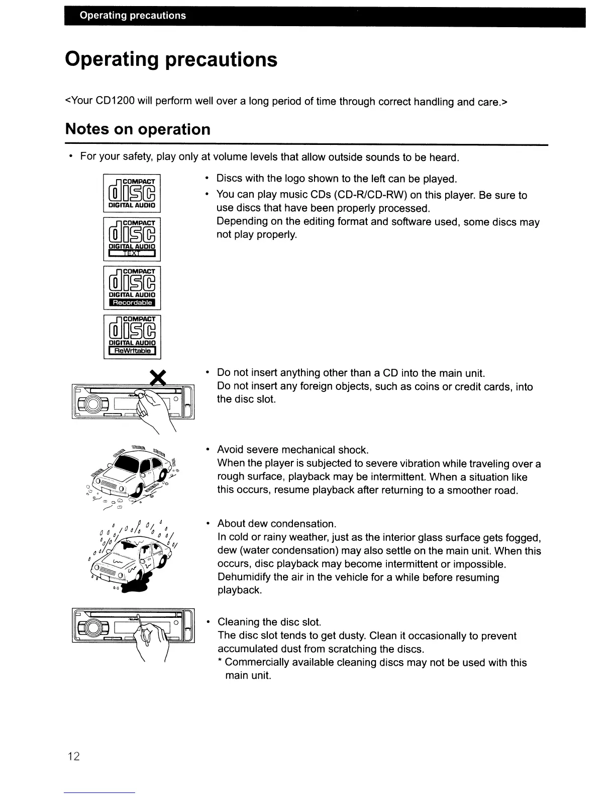 Operating precautions