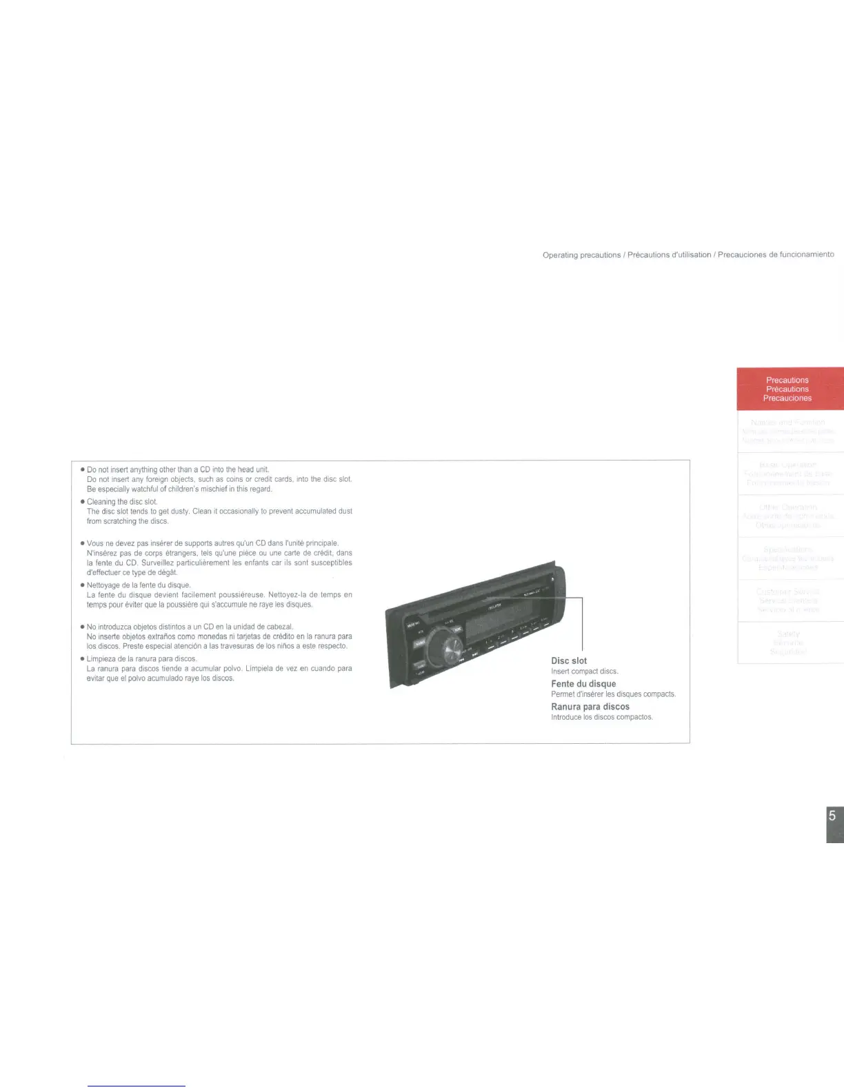 Operating precautions I Precautions d'utilisatlon I Precauciones de funClonamlenlo