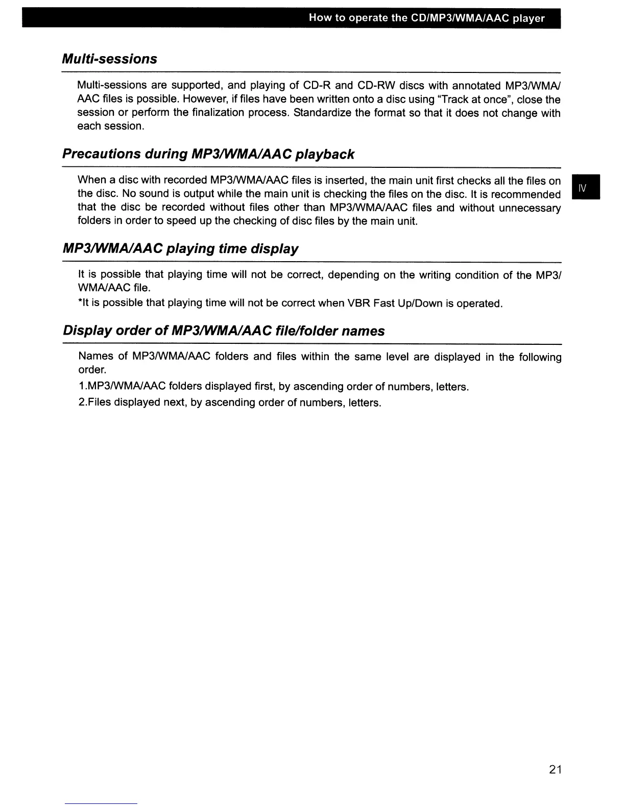 that the disc be recorded without files other than MP3IWMAJAAC files and without unnecessary